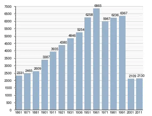في سنة 1861 بلغ عدد السكان 2٬331 نسمة، وتطور العدد ليصل في سنة 2011 لـ 2٬130 نسمة.