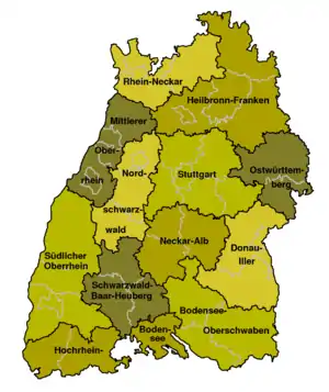 - "الدولة وسكانها". بادن-فورتمبيرغ. مؤرشف من الأصل في 27 يونيو 2018. اطلع عليه بتاريخ 18 ديسمبر 2016. الوسيط