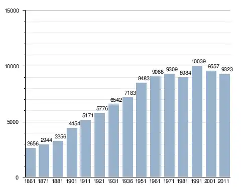 في سنة 1861 بلغ عدد السكان 2٬656 نسمة، وتطور العدد ليصل في سنة 2011 لـ 9٬323 نسمة.