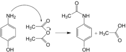 4- يتفاعل 4-أمينوفينول مع حمض خليك لامائي ليعطي الباراسيتامول.