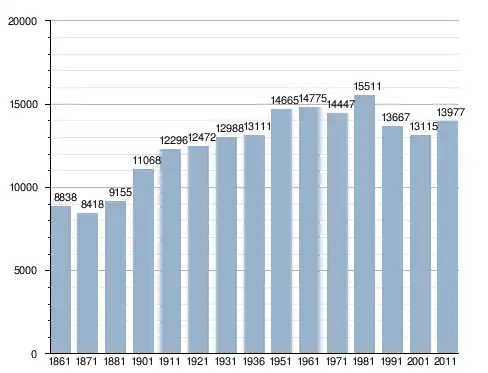 في سنة 1861 بلغ عدد السكان 8٬838 نسمة، وتطور العدد ليصل في سنة 2011 لـ 13٬977 نسمة.