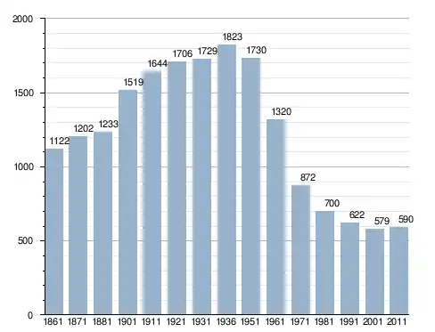 في سنة 1861 بلغ عدد السكان 1٬122 نسمة، وتطور العدد ليصل في سنة 2011 لـ 590 نسمة.