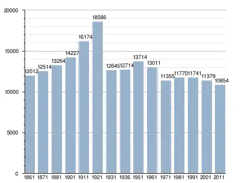 في سنة 1861 بلغ عدد السكان 12٬012 نسمة، وتطور العدد ليصل في سنة 2011 لـ 10٬854 نسمة.