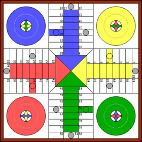 - اللاعب الذي يوصل جميع أقراصه لخانة الوصول يعتبر فائزا. يستمر اللاعبون الآخرون في اللعب مع إلغاء دور اللاعب الفائز وهكذا دواليك.