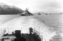 كانت أول مهمة لتيربيتز بعد دخولها الخدمة في كريغسمرينه في 25 فبراير 1941 لتكون بمثابة رادع لاي محاولات سوفيتية ممكنة لخروج اسطول بحر البلطيق بعد الغزو الألماني للاتحاد السوفيتي. وانضم إلى السفينة الطراد الثقيل الأدميرال شير والطرادات الخفيفة لايبزيغ ونورنبرغ وكولن. قامت القوة بدوريات قبالة جزر أولاند لبضعة أيام قبل أن تعود إلى كيل. [16] في 14 يناير 1942، غادرت تيربيتز المياه الألمانية متجهة إلى النرويج، ووصلت في 17. [18]