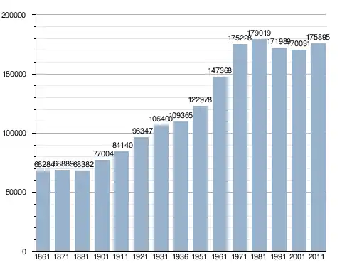 في سنة 1861 بلغ عدد السكان 68٬284 نسمة، وتطور العدد ليصل في سنة 2011 لـ 175٬895 نسمة.