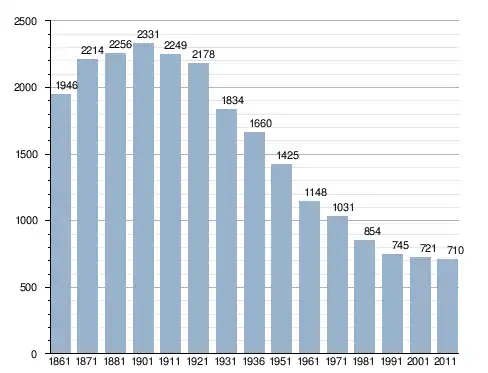 في سنة 1861 بلغ عدد السكان 1٬946 نسمة، وتطور العدد ليصل في سنة 2011 لـ 710 نسمة.