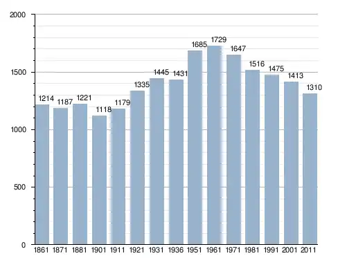 في سنة 1861 بلغ عدد السكان 1٬214 نسمة، وتطور العدد ليصل في سنة 2011 لـ 1٬310 نسمة.