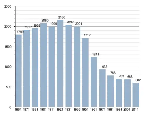 في سنة 1861 بلغ عدد السكان 1٬799 نسمة، وتطور العدد ليصل في سنة 2011 لـ 602 نسمة.