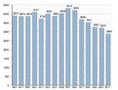 في سنة 1861 بلغ عدد السكان 3٬915 نسمة، وتطور العدد ليصل في سنة 2011 لـ 2٬905 نسمة.