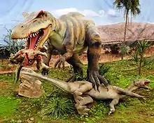 |CitationClass=تم تجاهله (مساعدة); تحقق من التاريخ في:|تاريخ الوصول=(مساعدة) - Benson, R. B. J.; Carrano, M. T.; Brusatte, S. L. (2009). "A new clade of archaic large-bodied predatory dinosaurs (Theropoda: Allosauroidea) that survived to the latest Mesozoic". Naturwissenschaften. 97 (1): 71–78. Bibcode:2010NW.....97...71B. doi:10.1007/s00114-009-0614-x. PMID 19826771. الوسيط