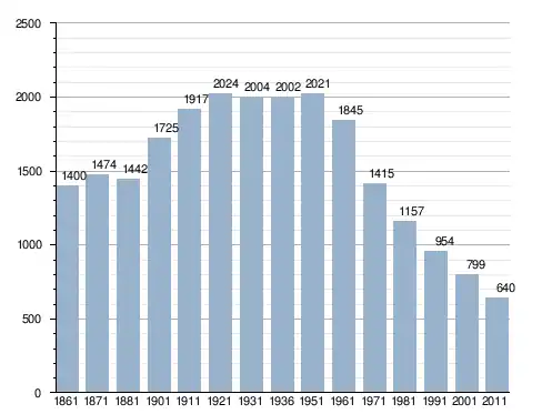 في سنة 1861 بلغ عدد السكان 1٬400 نسمة، وتطور العدد ليصل في سنة 2011 لـ 640 نسمة.