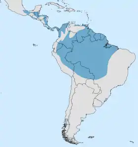 يعيش هذا الطائر في الغابات المنخفضة في كل مكان تقريبا من أمريكا الجنوبية، من جنوب المكسيك وحتى بيرو وبوليفيا والبرازيل، كما تتكاثر في ترينداد، أي أنه يعيش في كل الأماكن المحيطة بحوض الأمازون، من جبال الأنديز غربا إلى غيانا على المحيط الأطلسي في الشمال الشرقي، وكذلك إلى الأراضي الجنوبية من الأمازون. يعتبر الباز الأبيض حيوانا غير مهدد بالانقراض بسبب المساحات الشاسعة التي يعيش فيها.