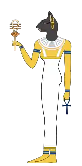 ![]() باستيت في هيئتها المُتأخرة أمرأة برأس قطة. | |||||