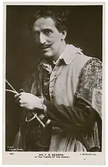 وفرانك بنسون هو ممثل بريطاني ولد في ويلز عام 1858، وتلقى تعليمه في وينشستر وكلية نيو أوكسفورد، وفي الجامعة تميز كلاعب رياضي وكممثل للهواة، وأسس شركته الخاصة للأنتاج عام 1883 وأنتج جميع مسرحيات شكسبير باستثناء ثلاثة. وبرز وقتئذ بأنه صاحب أول عرض مسرحي يوناني في أوكسفورد بمسرحية أجاممنون، والذي شارك فيها العديد من رجال أكسفورد الذين اشتهروا بعد ذلك في مجالات أخرى.