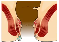 بسبب ورم دموي حول الشرج يؤدي إلى تمزق الأوردة الصغيرة، التي تستنزف الدم من فتحة الشرج.[4] قد يكون هذا التمزق نتيجة لحركة الأمعاء القوية أو توتر ناجم عن رفع الأحمال الثقيلة، والسعال أو الإجهاد. قد ينتج عنها تشققات، تختفي في غضون ساعات قليلة في أحواض السباحة الساخنة. وإذا تركت دون علاج، قد تُشكل جلطة.