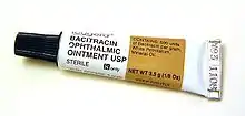 كما أن ملح باسيتراسين زنك يمتزج مع مضادات موضعية أخرى، ( غالبا بوليميكسين ب و نيوميسين) كمرهم ( مرهم مضاد حيوي ثلاثي، باسم تجاري شائع نيوسبورين)، يستخدم لعلاج العدوى المختلفة للجلد والعين الموضعية، كما أنه يستخدم لمنع إصابة الجروح بالعدوى، هناك شكل غير مرهمي من محلول عيني متوفر أيضا لعدوى العين.[12]