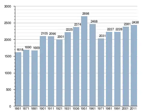 في سنة 1861 بلغ عدد السكان 1٬618 نسمة، وتطور العدد ليصل في سنة 2011 لـ 2٬438 نسمة.