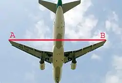 المسافة بين الجناحين لطائرة يقاس دائما بخط مستقيم من أقصى الجناح لأقصى الجناح بدون اعتبار شكل الاجنحة.