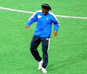 و هو يلعب مع منتخب غانا لكرة القدم.