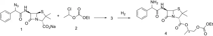 | 1-Ethoxycarbonyloxyethyl (2S,5R)-6-[[(2R)-2-amino-2-phenylacetyl]amino]-3,3-dimethyl-7-oxo-4-thia-1-azabicyclo[3.2.0]heptane-2-carboxylate | |