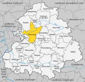 باكنانغ (بالألمانية: Backnang) هي Grosse Kreisstadt، مدينة و بلدة ألمانية تقع في ألمانيا في مقاطعة ريمس مور. يقدر عدد سكانها بـ 35,661 نسمة .