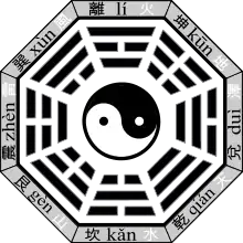 با تعني ثمانية , اما كوا فتعني تريكرام (رسوم بيانية).[1][2] اي باكوا تعني ثمانية تريكرامات.عموما الشكل يمثل تاجيتو (Taijitu ) مركزي، وتحيط به ثمانية تريكرامات من أي تشينغ (كتاب التغييرات) ، كل نقطة مصطفة مع اتجاه سماوي, لتشكل مثمن منتظم. الخطوط التي تشكل التريكرامات تتميز بنوعين :