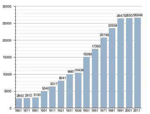 في سنة 1861 بلغ عدد السكان 2٬843 نسمة، وتطور العدد ليصل في سنة 2011 لـ 26٬648 نسمة.