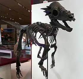 ![]() هيكل عظمي مصبوب لعينة "ساندي" في متحف أونتاريو الملكي. | |