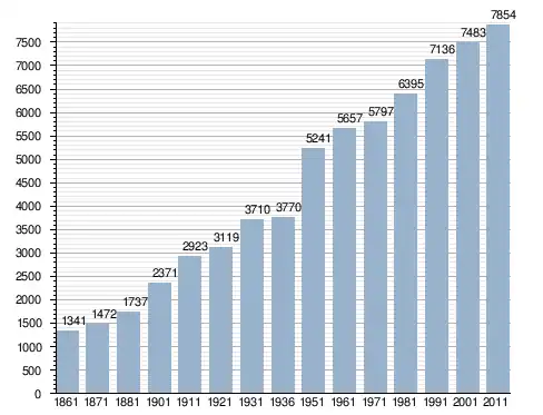 في سنة 1861 بلغ عدد السكان 1٬341 نسمة، وتطور العدد ليصل في سنة 2011 لـ 7٬854 نسمة.