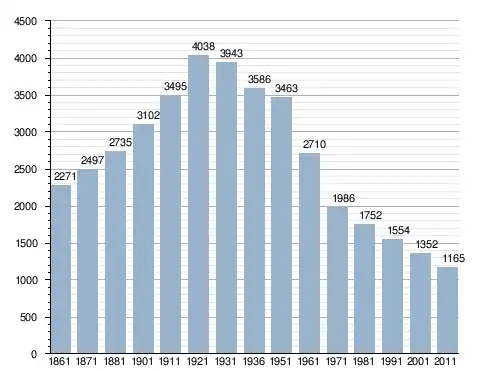 في سنة 1861 بلغ عدد السكان 2٬271 نسمة، وتطور العدد ليصل في سنة 2011 لـ 1٬165 نسمة.