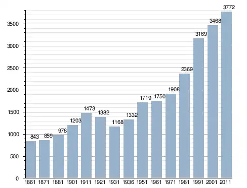 في سنة 1861 بلغ عدد السكان 843 نسمة، وتطور العدد ليصل في سنة 2011 لـ 3٬772 نسمة.