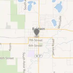 - "صفحة بالدوين (ميشيغان) في GeoNames ID". GeoNames ID. اطلع عليه بتاريخ 6 مارس 2021. الوسيط