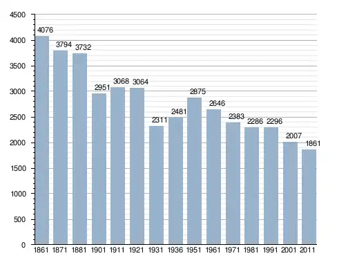 في سنة 1861 بلغ عدد السكان 4٬076 نسمة، وتطور العدد ليصل في سنة 2011 لـ 1٬861 نسمة.