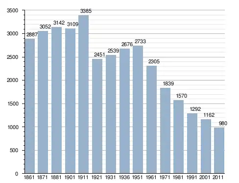 في سنة 1861 بلغ عدد السكان 2٬887 نسمة، وتطور العدد ليصل في سنة 2011 لـ 980 نسمة.