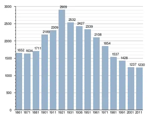 في سنة 1861 بلغ عدد السكان 1٬652 نسمة، وتطور العدد ليصل في سنة 2011 لـ 1٬230 نسمة.