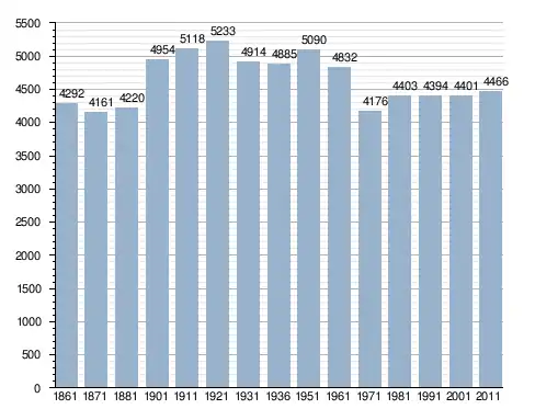 في سنة 1861 بلغ عدد السكان 4٬292 نسمة، وتطور العدد ليصل في سنة 2011 لـ 4٬466 نسمة.