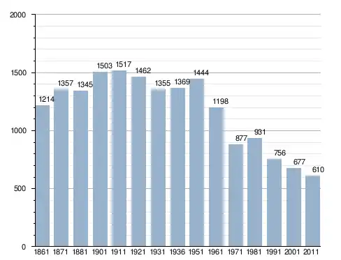 في سنة 1861 بلغ عدد السكان 1٬214 نسمة، وتطور العدد ليصل في سنة 2011 لـ 610 نسمة.