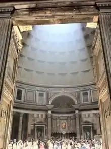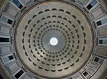 بقطر داخلي يبلغ 44.30 مترًا، لا تزال قبة البانثيون أكبر قبة نصف كروية على الإطلاق تم بناؤها من الخرسانة غير المسلحة [45]. كان من أعمال إعادة الإعمار التي عام 128 م. خضع المبنى لحكومة الإمبراطور هادريان.