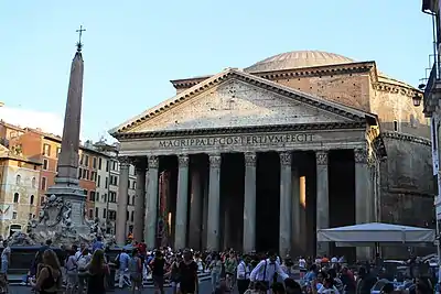 بانثيون (باليونانية: Πάνθειον؛ باللاتينية: Pantheon؛ ويعني معبد كل الآلهة) تأسس عام 27 قبل الميلاد. من قبل ماركوس فيبسانيوس أغريبا، صَهْر أوغسطس. أعاد الإمبراطور هادريان بناؤهُ بين 120 و 124 بعد الميلاد، بعد حرائق عام 80 و 110 م. التي أضّرت بالبناء السّابق لعصر أوغسطس.[1]