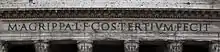 نقش التفاني الأصلي للمبنى، الموضح في إعادة الإعمار اللاحقة لعصر هادريان، ينص على: M • AGRIPPA • L • F • COS • TERTIVM • FECIT، وهي: