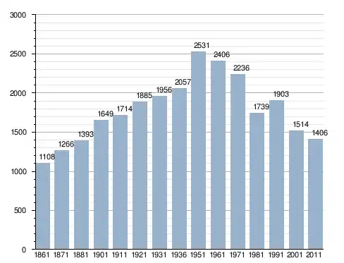 في سنة 1861 بلغ عدد السكان 1٬108 نسمة، وتطور العدد ليصل في سنة 2011 لـ 1٬406 نسمة.