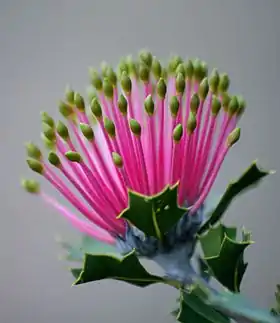 البانكسيا الإسفينية تعرف أيضا باسم بانكسيا عود ثقاب هي نبات مزهر وهي من الأنواع المهددة بالانقراض. تستوطن جنوب غرب أستراليا الغربية، وتنتمي إلى ضرب يحوي جنس من ثلاثة أجناس من البانكسيا ذات النورات أو الزهرات برؤوس على شكل قبة بدلا من خاصية المسمار التي تميز زهرة البانكسيا. وهي شجيرة تصل إلى 5 أمتار (16 قدما) من الأرتفاع، ولها أوراق شائكة والورد زهري. والتسمية الشائعة بانكسيا عود الثقاب تأتي بسبب شكل البراعم الفردية في مراحلها المتأخرة والتي تشبه أعواد الثقاب. يتم تلقيح هذا النوع من آكلات العسل (Meliphagidae).