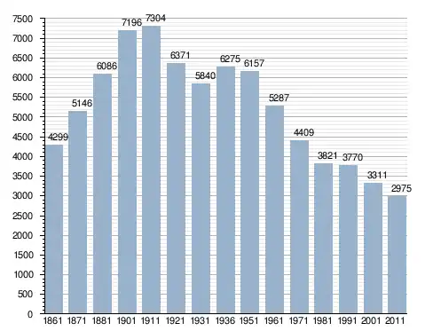 في سنة 1861 بلغ عدد السكان 4٬299 نسمة، وتطور العدد ليصل في سنة 2011 لـ 2٬975 نسمة.