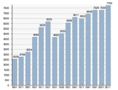 في سنة 1861 بلغ عدد السكان 2٬558 نسمة، وتطور العدد ليصل في سنة 2011 لـ 7٬760 نسمة.