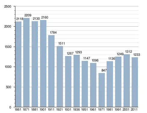 في سنة 1861 بلغ عدد السكان 2٬118 نسمة، وتطور العدد ليصل في سنة 2011 لـ 1٬233 نسمة.