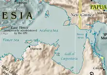 بحر آرافورا arafura بحر غرب المحيط الهادئ فوق الجرف القاري بين أستراليا وغينيا الجديدة.[1][2][3] ويحده مضيق توريس وذلك من خلال بحر كورال في الشرق، وخليج كاربينتاريا في الجنوب، وبحر تيمور في الغرب وبحر باندا وبحر سيرام .وتطل البحار إلى شمال غربي البلاد. ومن 1290 كيلومترا (800 ميلا) 560 كيلومترا وطويله (350 ميلا) على نطاق واسع. عمق البحار هي في المقام الأول 50-80 مترا (165-265 قدما) مع زيادة العمق إلى الغرب.