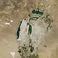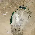 ![]() صورة بحر آرال بين عامي 1989 و2014، من ناسا | |