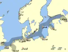 ابتداءً من القرن الحادي عشر، استقر مهاجرون من ألمانيابشكل رئيسي على الشواطئ الجنوبية والشرقية لبحر البلطيق، وهي حركة تسمى Ostsiedlung ("الاستقرار الشرقي"). وكان مستوطنون آخرون من هولندا، الدنمارك، واسكتلندا . و Polabian السلاف مندمجون تدريجيا من قبل الألمان.[8] سيطرت الدنمارك تدريجيًا على معظم ساحل البلطيق، حتى فقدت الكثير من ممتلكاتها بعد هزيمتها في معركة بورنهوفيد عام 1227 .