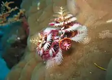 نجم البحر ذو تاج الشوك ( Acanthaster planci ) هو المفترس الرئيسي للشعاب المرجانية، حيث يفترس الزوائد المرجانية عن طريق التسلق عليها، وبثق معدتها فوقها، وإطلاق الإنزيمات الهاضمة لامتصاص الأنسجة المسيلة.يمكن للفرد البالغ أن يأكل ما يصل إلى 6 م 2 من الشعاب المرجانية سنويًا. في عام 2000 ، أدى انتشار نجم البحر ذي التاج الشوك إلى فقدان 66٪ من الغطاء المرجاني الحي على عينات من الشعاب المرجانية. التغييرات في جودة المياه والصيد الجائر للحيوانات المفترسة الطبيعية، مثل العملاق تريتون، قد ساهمت في زيادة عدد نجم البحر ذي التاج الشوك.